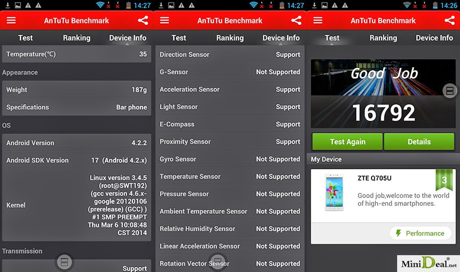 Screen shot and Antutu testing of New Arrival ZTE Q705U
